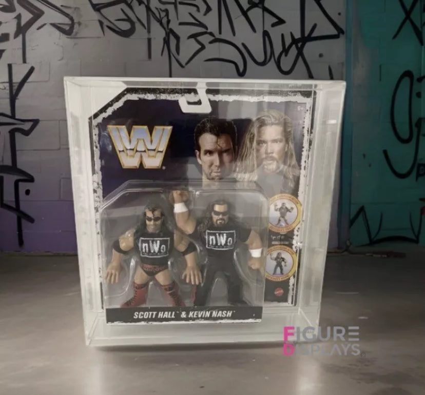 Showcase your WWF Hasbro Tag Team figures in style with this premium acrylic display case, designed to keep your collectibles safe and looking their best.